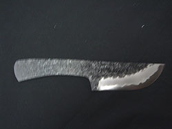 | 美濃伝和鉄精練 細工師匠.両刃 皮剥 全長 195mm 刃長 85mm 身厚 3.0mm 重量 90g プレート材質 日立安来鋼青紙スーパー鋼 価格 12,600円 |